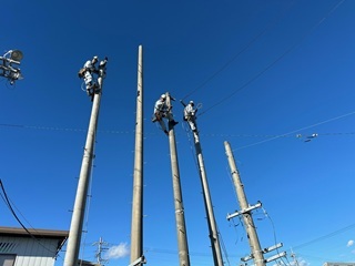 電線の張替や補修、電柱に取り付けてある変圧器などの新設、取り替え、電柱の新設や建て替え等 施工を行っております
